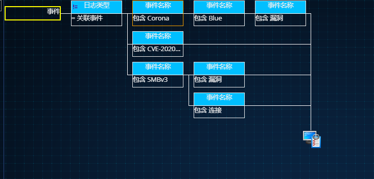 事件=(日志类型!=“关联事件”)&((事件名称 包含 “Corona” )&(事件名称 包含 “Blue”)&(事件名称 包含 “漏洞”))|((事件名称 包含 “CVE-2020-0796” ))|((事件名称 包含 “SMBv3” )&(((事件名称 包含 “漏洞” )|(事件名称 包含 “连接” ))))