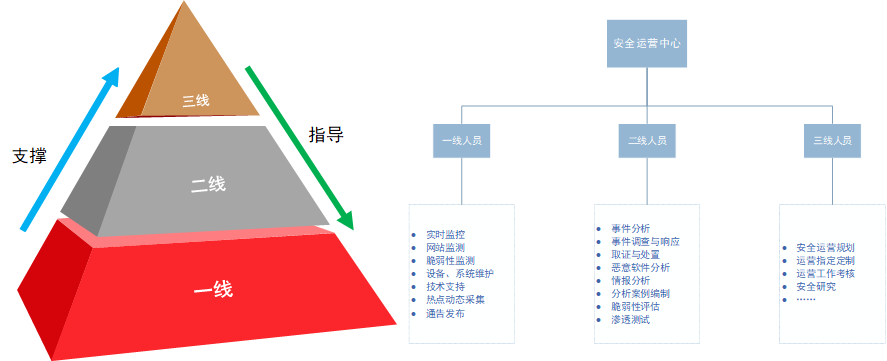 安全运营是一个复杂的工程化体系。成熟的安全运营体系与 IT 系统、业务活动之间必然是深度耦合的关系,如同人体的免疫系统与其他循环系统之间的关系,一个复杂体系的运转,必须要有与之相匹配的组织架构。威廉希尔500欧洲指数北斗安全运营中心由威胁分析与处置团队、脆弱性管理团队、基础架构管理团队构成,支撑完整的安全运营活动。