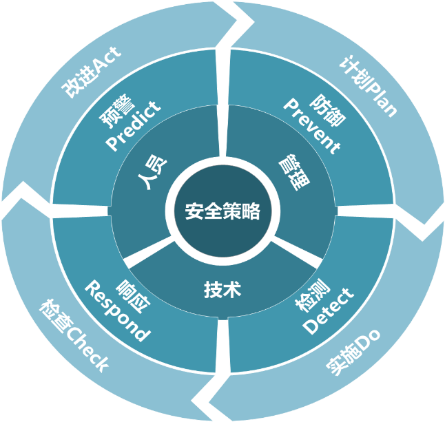 该模型主要分为4个层次,最核心部分是安全策略,通过安全策略指导整体安全体系的整个安全体系的设计、实施、维护和改进,是一切信息安全实践活动的方针和指南。