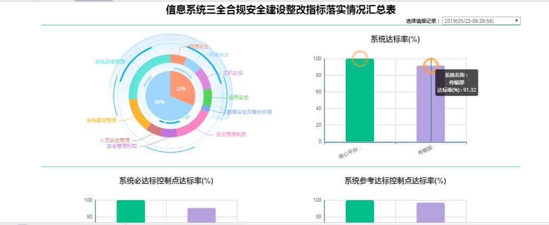 落实等保2.0的对应要求。平台可通过技术层面,定期调度基线模块和漏扫引擎获取相关的数据,掌握检查安全配置与安全策略的一致性;在管理层面,借助内置的信息安全专项检查填报机制,掌握安全管理制度的落实性,且可形成相应的报告报表,实现各个部门间的相向对比,为安全检查结果分析提供有力支撑。