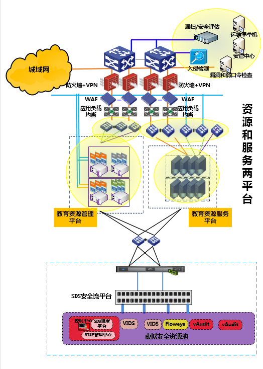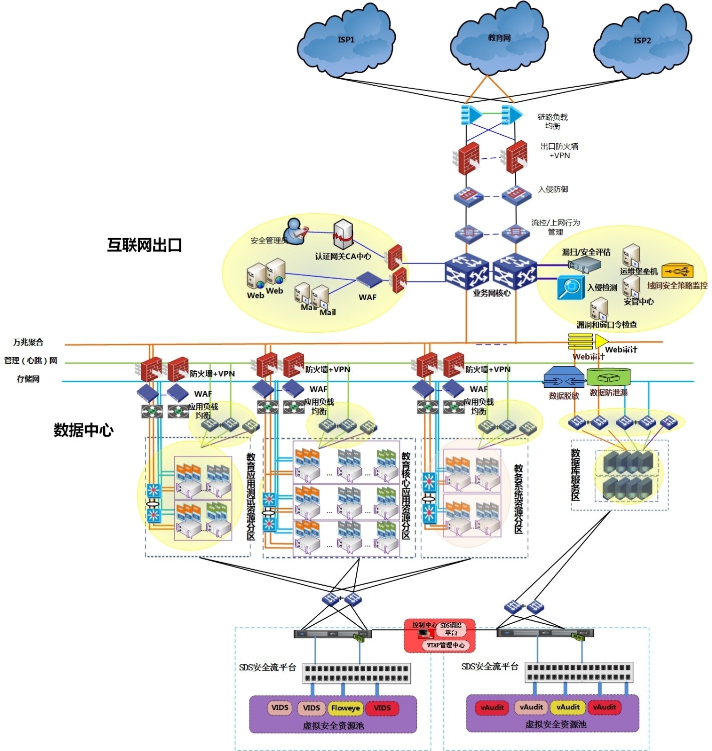 4)以可编排可弹性扩展的独立安全资源池的方式全面保障校园网数据中心业务应用资源池的安全。