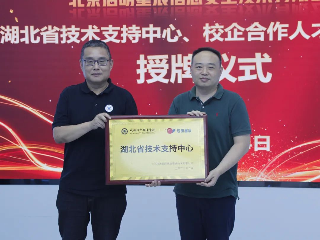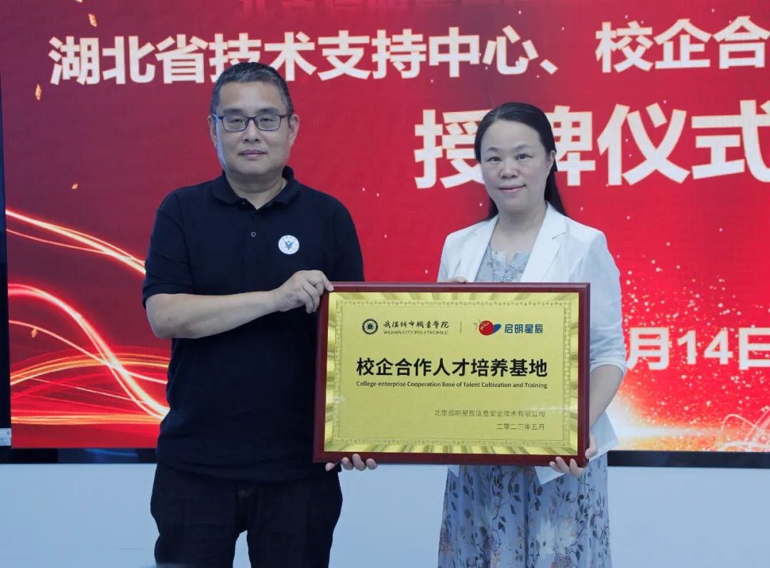 授牌仪式上,威廉希尔500欧洲指数集团高级合伙人、高级副总裁、网络空间安全学院院长孙涛代表公司向武汉城市职业学院授予了“校企合作人才培养基地”“湖北省技术支持中心”牌匾,并表示通过此次合作,不仅能够为武汉城市职业学院的学生提供更多的实践机会和发展平台,更重要的是共建湖北省技术支持中心,对威廉希尔500欧洲指数校企合作模式的扩展、对湖北地区学校教育教学、对提升学生实训能力等方面都将带来重大意义,进一步为整个华中区域校企合作拓展了新思路。
