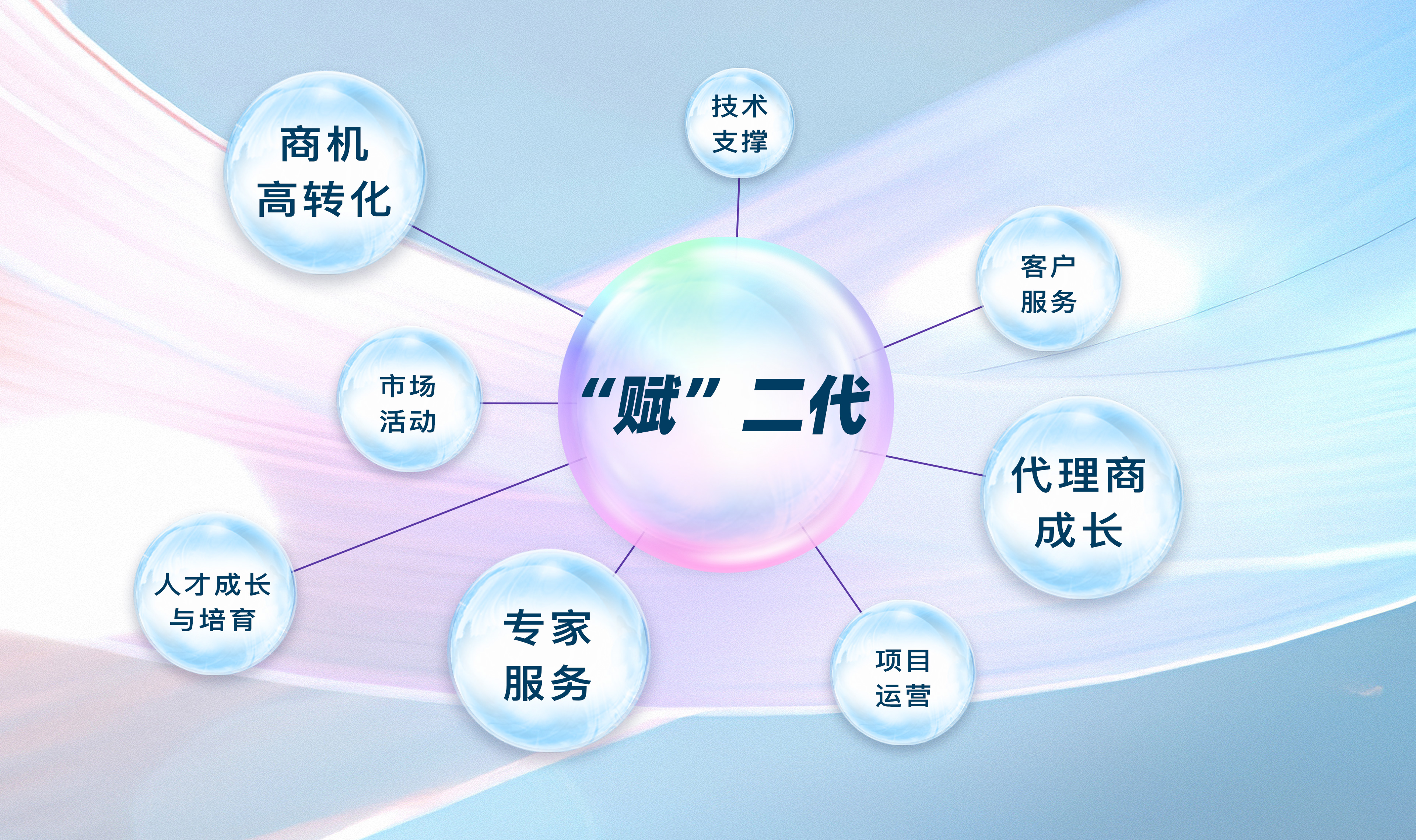 通过“赋”二代各项活动与目标的推进、落实,包括完备的各级代理商人才成长与培育体系、商机一对一运营与高转化率运营机制、合作伙伴全国市场活动运营与内部支撑体系、全天候客户项目运营与专家服务机制等在内的合作伙伴赋能支撑体系与机制将触手可及!
