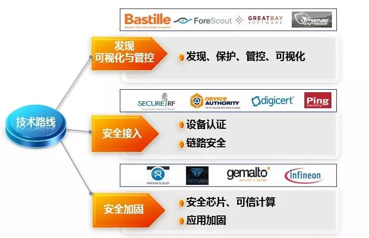 基于物联网安全技术挑战的分析,叠加安全的差异化需求,2018年物联网安全市场推演出了三条主要的技术路线。