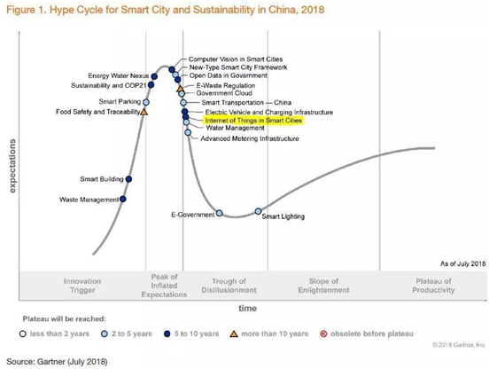 2、Hype Cycle for Smart City and Sustainability inChina, 2018 Gartner Published: 18 July 2018 ID: G00340352