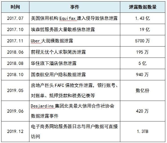 近年来金融行业重大数据泄露事件