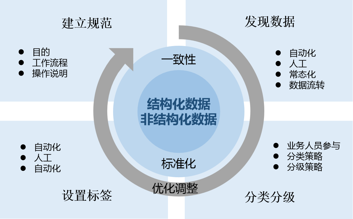 对数据分类分级是数据安全的一个重要过程。它根据一种预定义的标准,对数据资产进行一致性、标准化管理,使个人信息、重要数据或企业经营管理内部数据等国家法规保护的数据得到妥善保护。