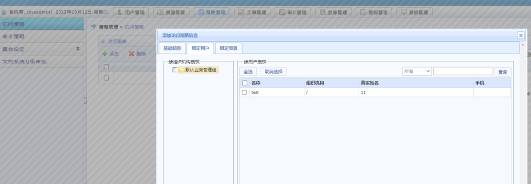 威廉希尔500欧洲指数集团35及357系列堡垒机采用的就是RBAC授权模型,新建用户、资产后,先在策略管理中新建一条访问策略,然后去选择用户组或者单一运维用户,再选择资产。在形成的访问策略下,策略可以被认为一个角色,当选择的用户组或者资产业务管理组新增用户或资产,自动和策略进行绑定,而无需人工干预。