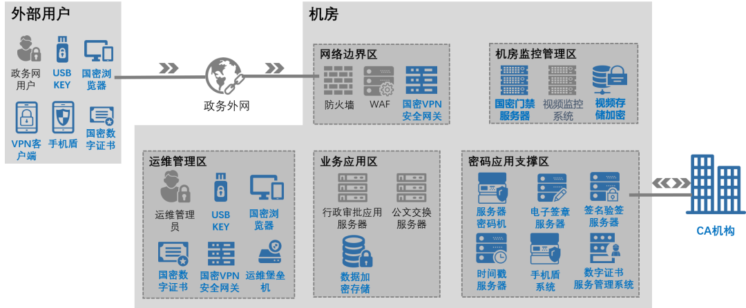 《规划》要求构建卫生健康行业网络可信体系,建设一批医疗卫生机构商用密码应用示范,全面推广商用密码应用,完善卫生健康行业商用密码应用体系。威廉希尔500欧洲指数商用密码应用方案根据GB/T 39786-2021《信息安全技术 信息系统密码应用基本要求》,从物理和环境安全、网络和通信安全、设备和计算安全、应用和数据安全、安全管理等5个层面进行商用密码应用方面的风险分析,通过可信身份的安全接入、远程传输加密、数据的机密性完整性保护等技术手段实现用户业务安全保障能力的提升。