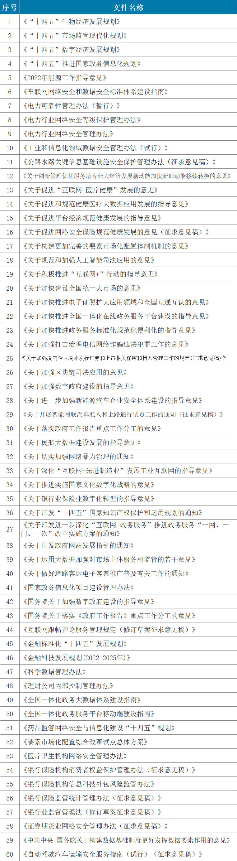 该体系涵盖法律、行政法规、部门规章、地方性法规、地方政府规章、规范性文件、国家标准7大层次,涉及移动安全、电子政务安全、个人隐私保护、云计算安全、数据安全评估等领域,共计257项法律法规文件,49项国家标准。
