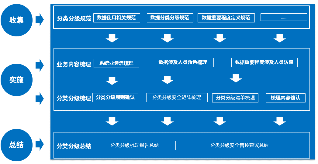威廉希尔500欧洲指数通过大量的政务行业用户实践经验积累,形成了一套行之有效的分类分级方法,根据相关的法律法规要求,采用数据分类分级工具+专业服务人员的组合,全面开展数据分类分级工作,形成政务行业用户的数据分类分级清单。整体服务流程如下:
