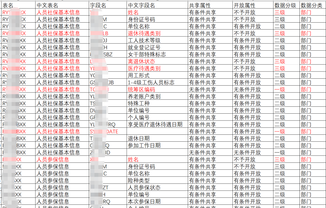 政府部门的信息资源涉及各行各业,数据存储的格式众多,有文件、表、行列、字段等不同的数据粒度。不同行业中影响信息资源级别的属性要素也不一,例如地理信息资源地图的比例尺和所包含的地图元素是影响信息资源的级别的关键因素。