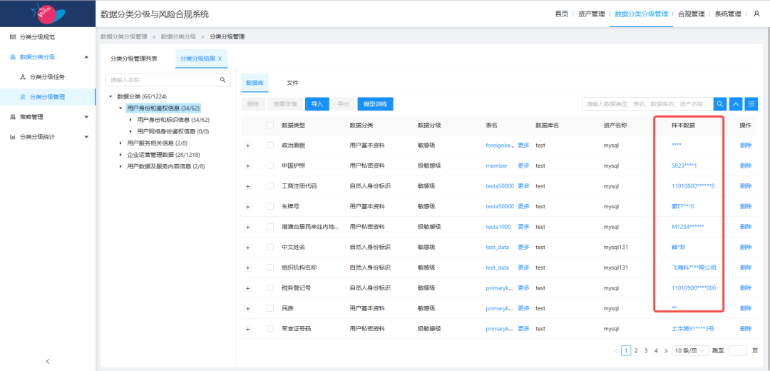 此外,威廉希尔500欧洲指数数据分类分级与风险合规系统基于数据安全角度进行设计,内置针对样本数据可设置是否留存、以及留存的样本数据设置脱敏策略,防止数据泄露。