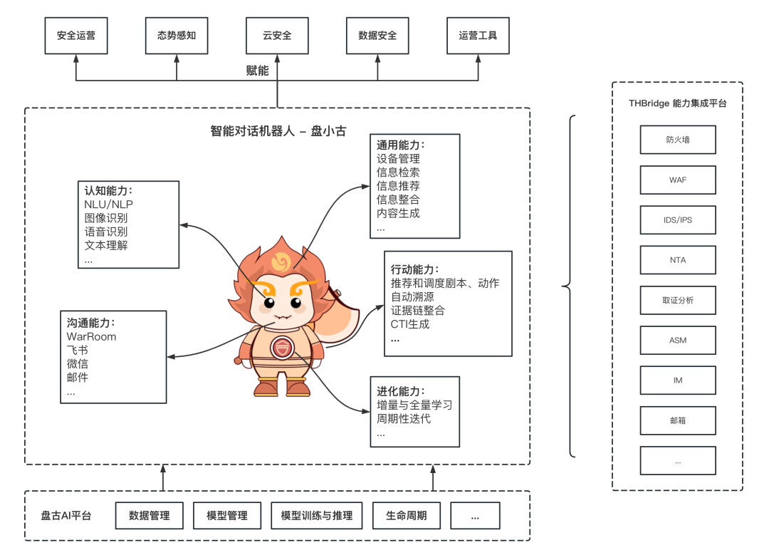 在安全运营业务中,“盘小古”可作为安全分析人员的智能助手,以自然语言的方式接收安全任务并反馈结果,从而扩展安全运营平台功能、提升一线安全人员工作效率。
