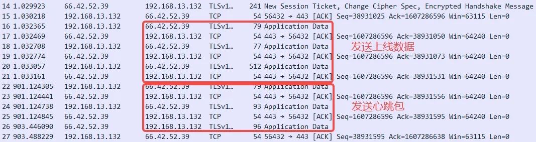 使用tls加密之前收集的系统信息,发送给C2,随后等待执行C2下发的各类命令。