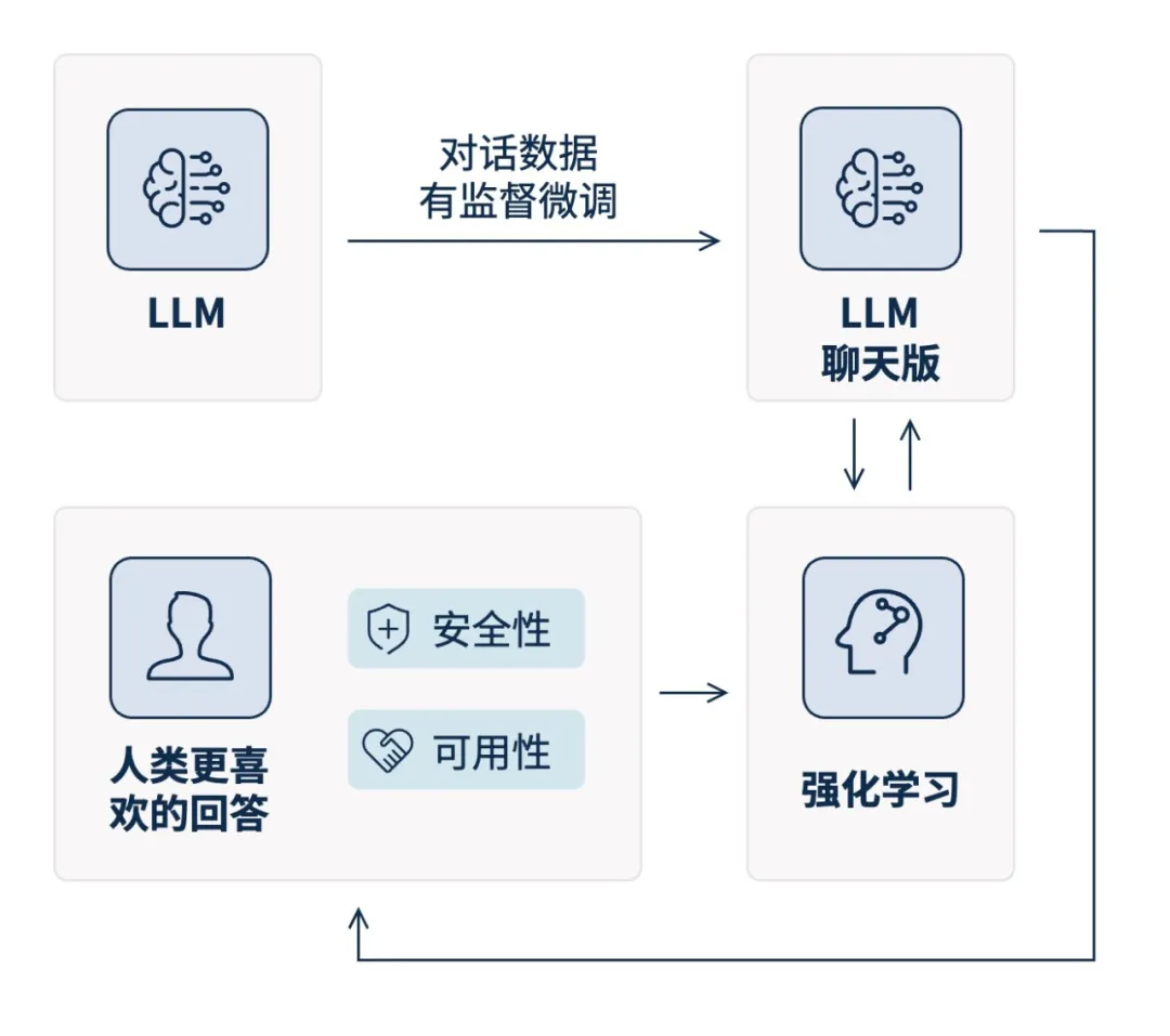 尤其是人类反馈强化学习技术,是希望大模型能够对齐人类认知,在合理应用知识的同时,提升回答的可用性和安全性。