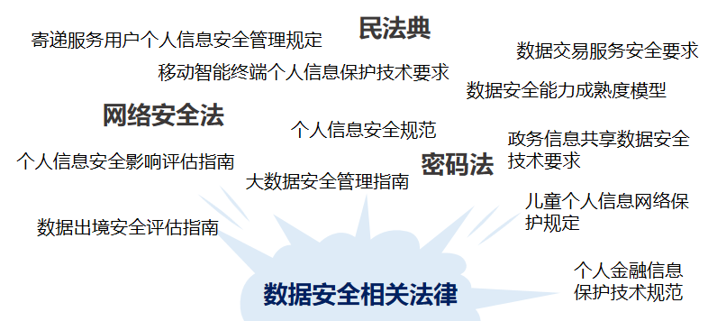 面对严峻的数据安全保护态势,我国颁布一系列与数据安全及个人信息保护相关的法规法规制度标准,数据安全相关的法规呈爆炸性增长。