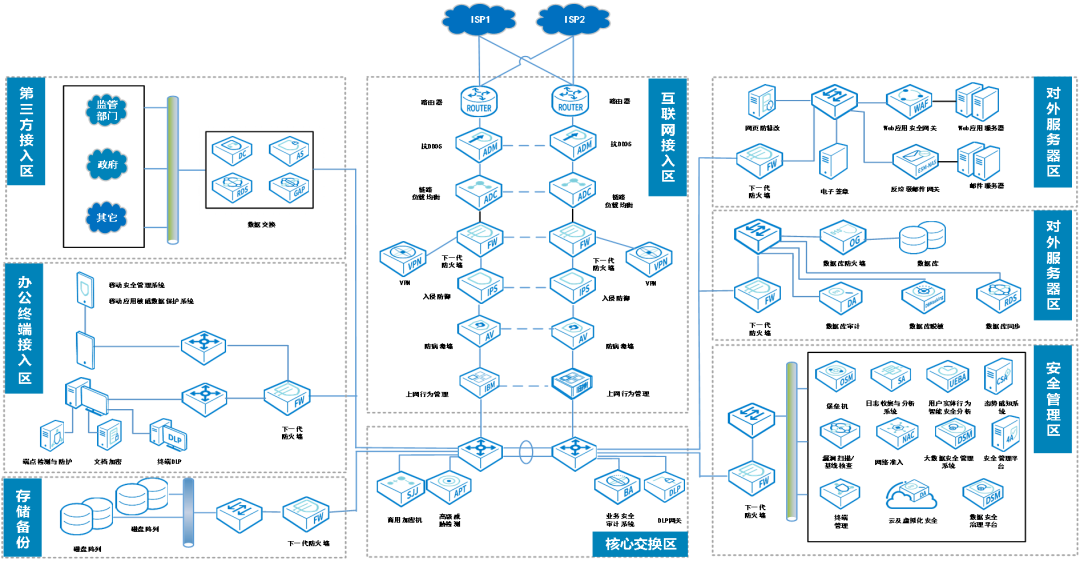 从数据安全治理入手,以数据安全管理为驱动,技术和产品落地,打造全方位的数据安全保障。按照数据安全建设要求,结合数据生命周期,威廉希尔500欧洲指数数据安全防护技术体系对外防止恶意入侵,对内防止数据泄露,提高数据可用性。数据安全防护整体设计框架如下图所示: