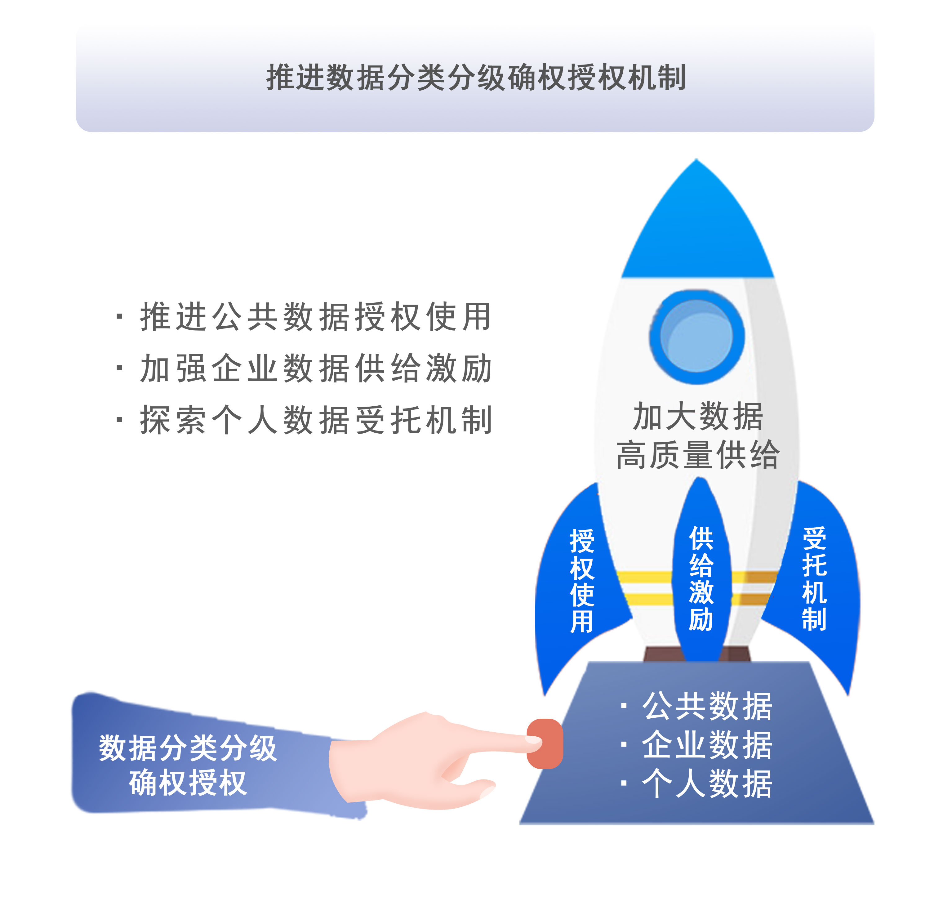 《意见》在关于“建立保障权益、合规使用的数据产权制度”中明确提出了探索数据产权结构性分置制度和推进数据分类分级确权授权机制。在国家数据分类分级保护制度下,推进数据分类分级确权授权机制,逐步形成具有中国特色的数据产权制度体系。