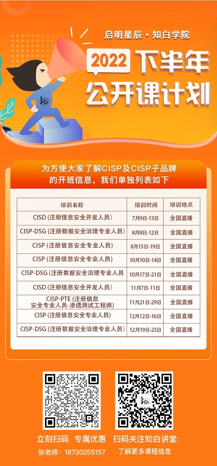 为方便大家了解CISP及CISP子品牌开班信息,我们单独列表如下: