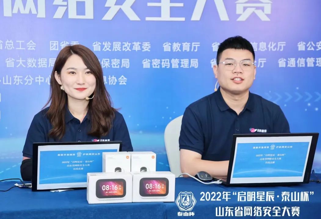 本次大赛全程开启在线视频直播,知白学院庄志诚(图右)、龚晓燕(图左)实时解说播报现场赛况。直播间特邀威廉希尔500欧洲指数知白学院副院长张镇进行采访,张院长表示,为保证本次山东省网络安全大赛的顺利举行,知白学院提前3个月投入到大赛的前期筹备工作,结合最新的行业相关法律法规,深挖赛题知识的广度与深度,从而保证大赛的公平性以及赛题的合理性,全方位考察参赛选手多方面综合能力。同时就知白学院网络安全人才培养建设体系进行了详细介绍。据统计,本次大赛累计观看人数超过10万人次。