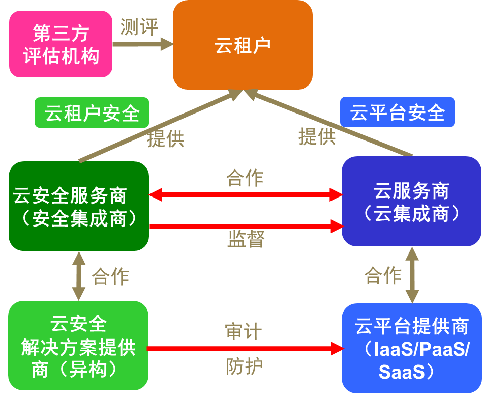 威廉希尔500欧洲指数的安全防护理念从结构上保障云系统及租户的安全,将云计算安全分为云平台安全和云租户安全,云服务商主要负责云平台安全保障,云安全服务商主要负责云租户安全保障,同时云安全服务商协助租户对云服务商进行监督和审计,该异构模式可以保障租户的安全能力最大化。